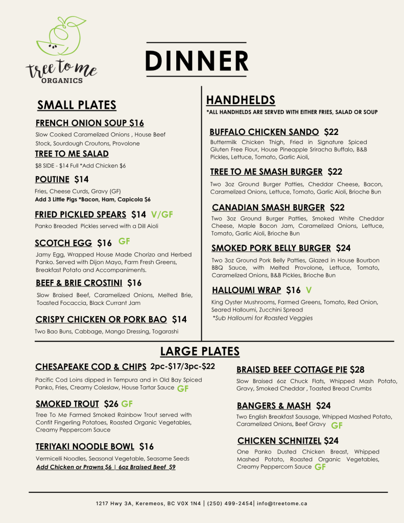 - Our menu changes often to reflect the seasons and the range of produce harvested from our farm.